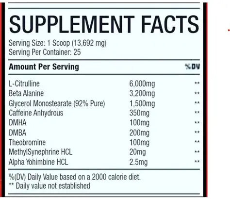 This product packs a powerful punch with its key ingredient being the one your always looking for plus 350 mg Caffeine, 100 mg Theobromine, 6000 mg L-Citrulline, and 1500 mg Glycerol. Experience an enhanced mood and superior pump, all while powering through your workout. +