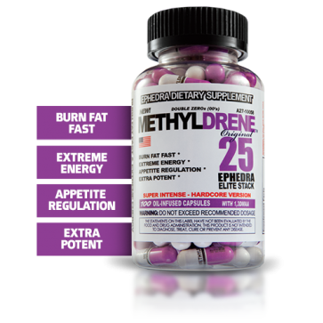 METHYLDRENE 25 EPHEDRA ELITE STACK is a super-potent multi-action formulation. Each MCT-oil-infused capsule delivers numerous specialty compounds including Ephedra, Citrus aurantium, Bacopa and more. Take it with your diet and exercise program to experience greater energy and motivation, and support the burning and "annihilation" of fat.*