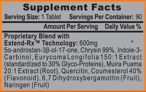 Whether a man's sex hormones are out of whack because of father time, or because of a self-inflicted blast of anabolic steroids, maintaining elevated levels of testosterone, while minimizing the production of estradiol and DHT, is one of the most important steps men can take to remain healthy, improve performance, and keep hard-earned muscle intact. Estrogenex® 2nd Generation (a new and improved Estrogenex® with even more state-of-the-art compounds) is a Hi-Tech Muscle & Strength and Healthcare supplement whose formulation incorporates 5a-androstan-3b-ol-17-one, chrysin 99%, indole-3-carbinol (IC3), Coumesterol(40%),Eurycoma longifolia, muira-puama, quercitin, 6,7 Dihydroxybergamottin, and Naringen. Any nutraceutical compound or nutraceutical product that has a positive influence on anabolic activity and muscle cell metabolism has both bodybuilding and anti-aging healthcare benefits. So whether you are an aging male looking for the most ideal anti-aging supplement available to restore healthy testosterone to estradiol ratios, or a bodybuilder looking for an estrogen-squashing, testosterone-unleashing, muscle-building supplement for the anabolic support required to achieve a hard, lean physique, Estrogenex® 2nd Generation is your solution!