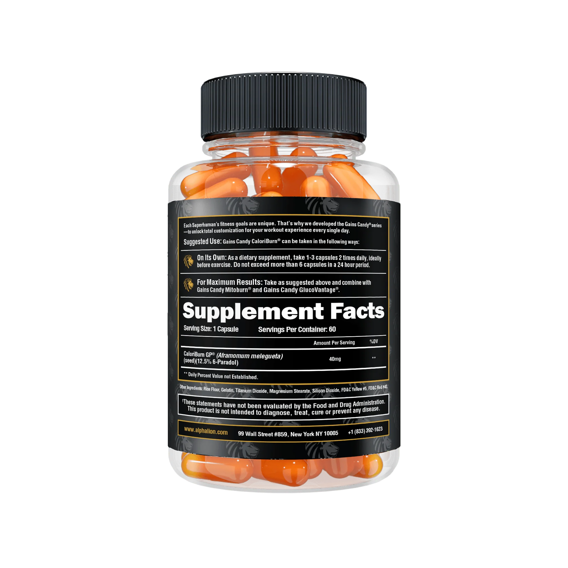 Gains Candy CaloriBurn® (60 servings) helps you increase your calorie-burning potential daily. Extracted from 100% natural Grains of Paradise, Gains Candy CaloriBurn® gives you the power to experience faster fat metabolism. Plus, its natural composition helps provide anti-inflammatory properties, enhancing your overall well-being.†