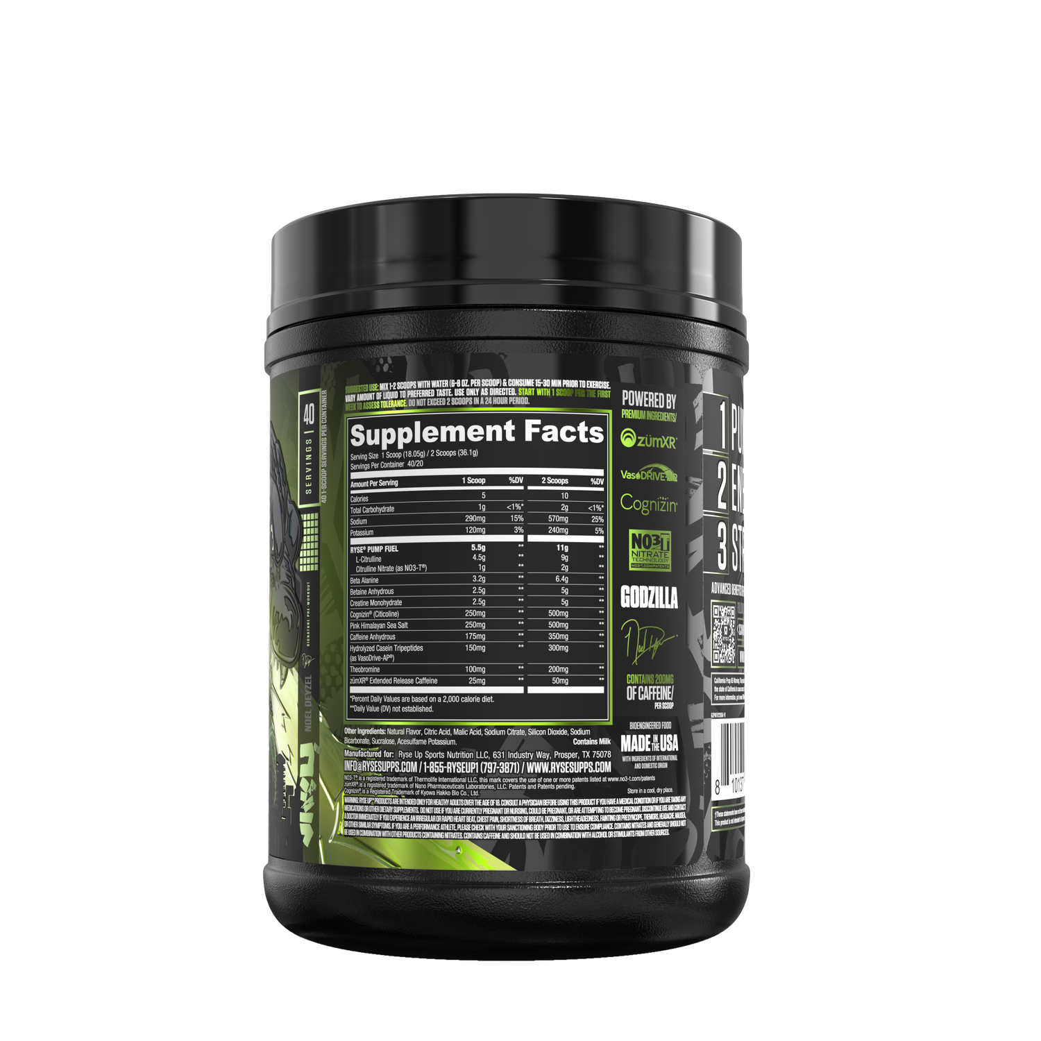 There can only be ONE King and the King of Pre-workouts has arrived. The officially licensed Noel Deyzel X Godzilla® Pre-Workout is an absolute monster. Packing a massive 40g serving size, this giant delivers city-crushing pumps, razor sharp focus & long-lasting explosive energy. Loaded with 12 ingredients, 5 clinically studied trademarks and a delicious blast of flavor, your new favorite pre-workout is ready for battle.
