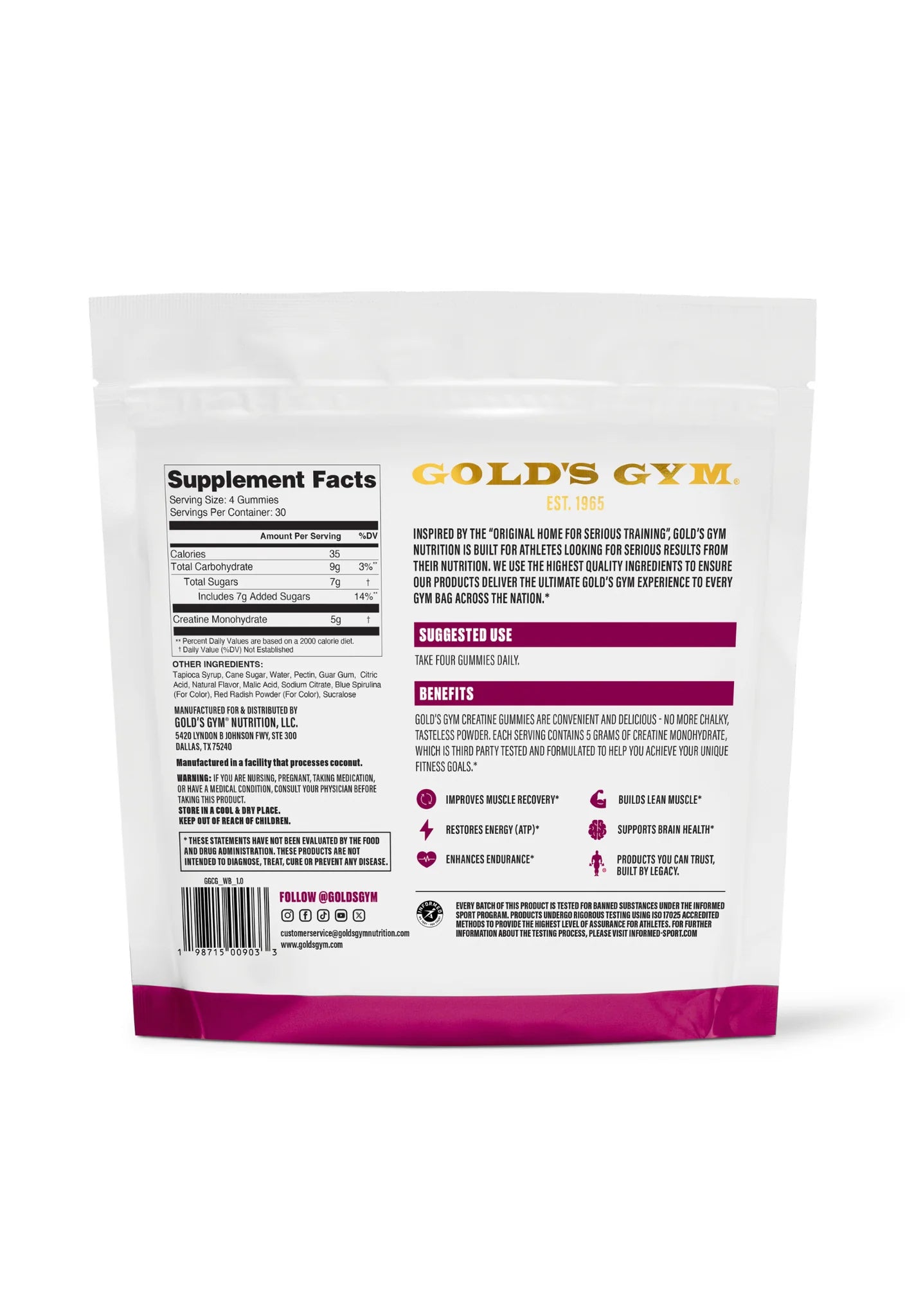 Stop scooping. Start seeing results. Gold’s Gym® Creatine Gummies give you real strength in a grab-and-go format. Perfect for beginners and pros alike.*
