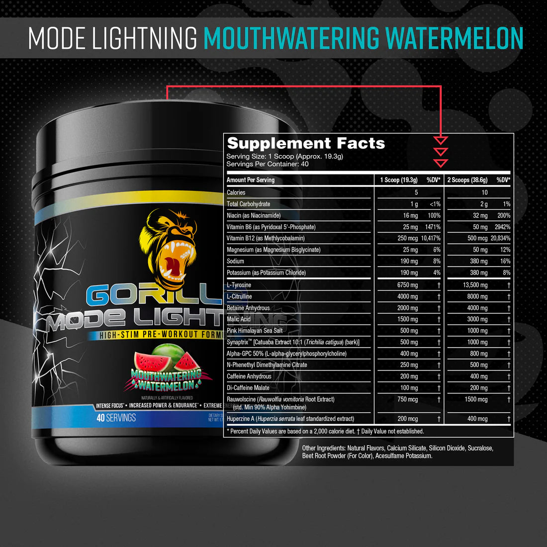 Introducing the most aggressive high-stim pre-workout we've ever released: Gorilla Mode Lightning