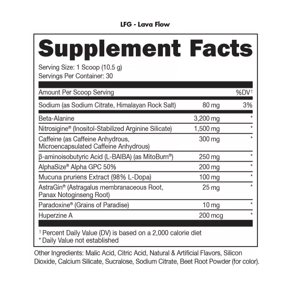 LFG: A revolutionary pre-workout specifically designed to optimize fat loss when combined with exercise.*