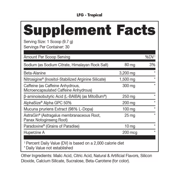 LFG: A revolutionary pre-workout specifically designed to optimize fat loss when combined with exercise.*