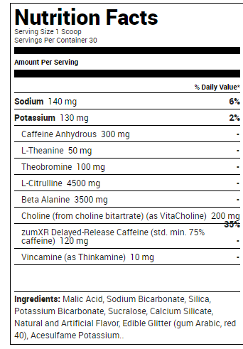 PUMP. ENERGY. STRENGTH. 390mg Caffeine, 4.5g L-Citrulline, 3.5g Beta Alanine Per Scoop. Advanced Benefits of RYSE Loaded Pre. Fuel Your Greatness. VitaCholine. ThinkAmine. ZumXR.