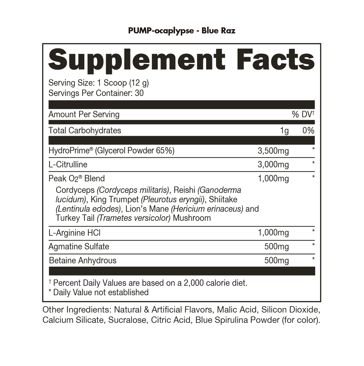 DISCLAIMER: After the consumption of PUMP-OCALYPSE, Bucked Up is not responsible if you strap yourself to a monster truck, spray paint your teeth with chrome, shout “WITNESS MEEEE”, and charge into battle for the glory of Valhalla.