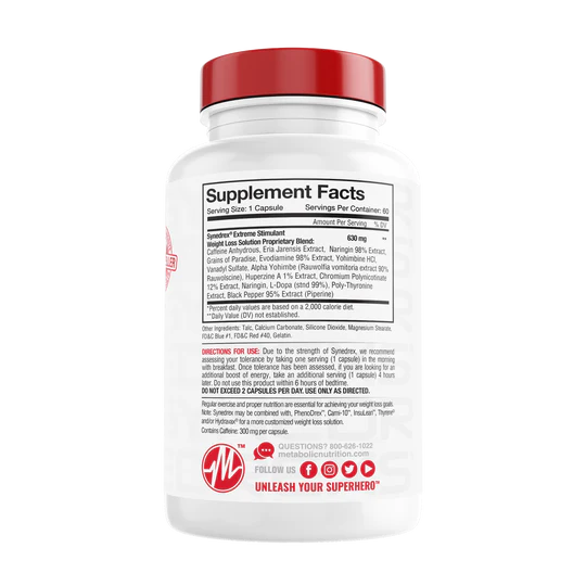 Synedrex has been scientifically engineered with all ingredients working synergistically together, thus avoiding the energy crash which is common with other high stimulant or weight loss products.