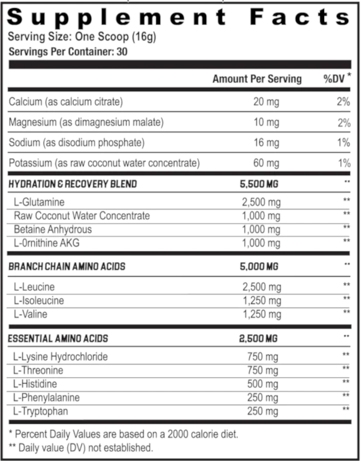 THE GRIND CONTAINS THE OPTIMAL AMOUNT OF BRANCHED-CHAIN AMINO ACIDS AND ESSENTIAL AMINO ACIDS ALONG WITH COCONUT WATER, BETAINE, ORNITHINE, AND GLUTAMINE. SINCE DAY ONE, THE GRIND HAS BEEN ONE OF OUR TOP SELLING SUPPLEMENTS AND AFTER TRYING IT, YOU'LL SEE WHY!