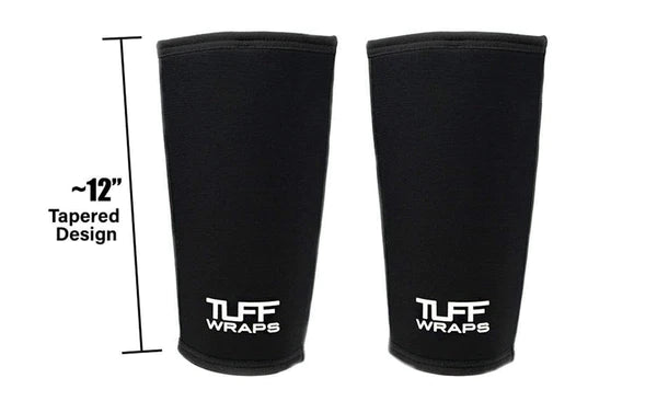 TuffWraps® 7MM Competition Knee Sleeves (SOLD IN PAIRS)is our competition ready knee sleeves! These are longer than your typical knee sleeves at 12.0 inches. The side seams and tapered design allows for a much better fit. The support and compression of these are undeniable and help to promote better blood flow. Experience support, warmth, and reduce any unnecessary strain on your knees. TUFF Competition Knee Sleeves are perfect for squats, powerlifting, and strongman training.